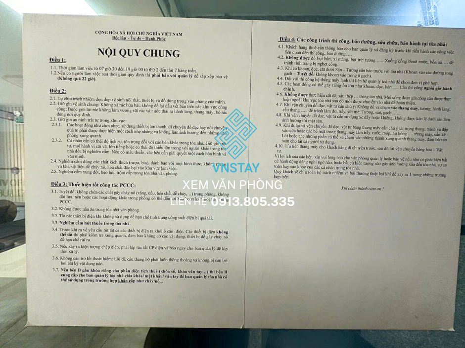 Tiền thuê: 12USD/m² (bao gồm phí quản lý, chưa bao gồm VAT)